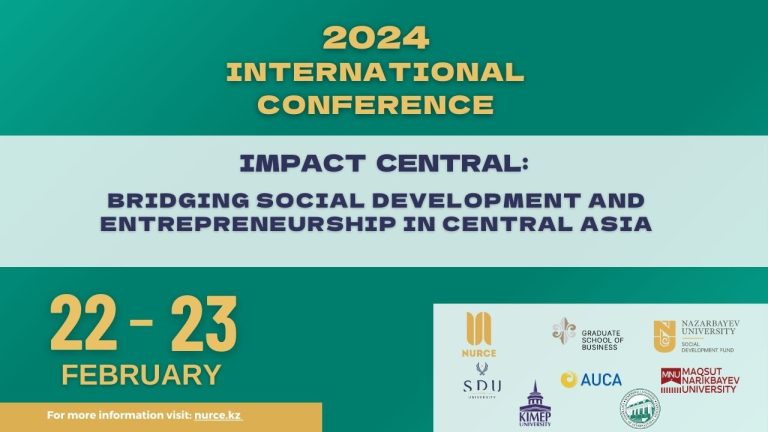 Назарбаев Университетінің «Кәсіпкерлікті зерттеу орталығы» және «Әлеуметтік даму қоры» Назарбаев Университетінің қауымдастығын 2024 жылдың 22-23 ақпанында Назарбаев Университетінің кампусында өтетін «Impact Central: Bridging Social Development and Entrepreneurship in Central Asia» атты екі күндік конференциясына шақырады.