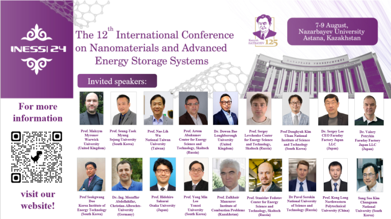 Присоединяйтесь к нам на 12-ой Международной конференции по наноматериалам и передовым системам хранения энергии (INESS-2024), которая будет проходить 7-9 августа 2024 года в г. Астана, организуемой Назарбаев Университетом, ТОО «Институт Аккумуляторов» и ЧУ «National Laboratory Astana»! Примите участие в новаторских дискуссиях и достижениях в области наноматериалов и систем хранения энергии. Ваше участие жизненно важно для успеха этого мероприятия!