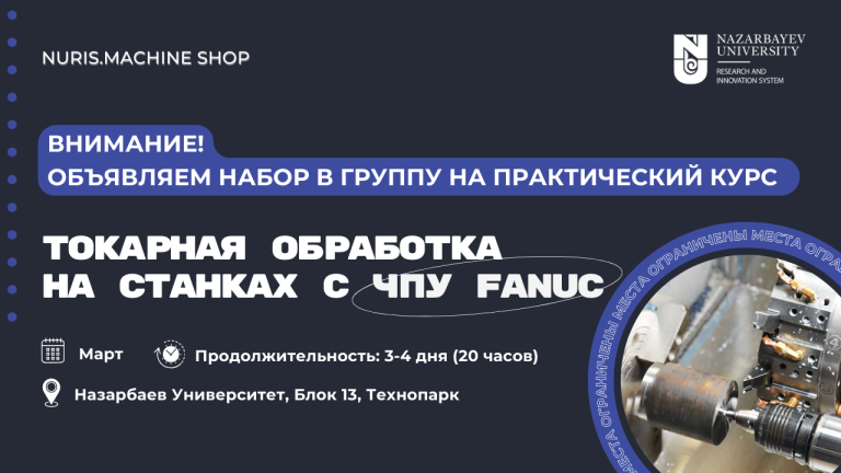 NURIS Machine Shop “CNC FANUC білдектерінде жону” практикалық курсына қабылдауды жүргізеді.