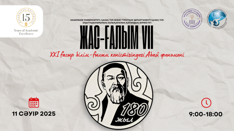 The Department of Kazakh Language and Turkology at Nazarbayev University is proud to announce the seventh edition of the national student scientific conference, “YOUNG SCIENTIST – VII,” to be held on April 11, 2025. This year’s conference is dedicated to the 180th anniversary of the great Kazakh figure Abai Kunanbayev and will explore the theme “The Abai Phenomenon in the Educational and Scientific Space of the 21st Century.”
