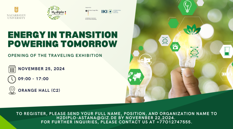 To register, please send your full name, position, and organization name to h2diplo-astana@giz.de by November 22, 2024. For further inquiries, please contact us at +77012747555.