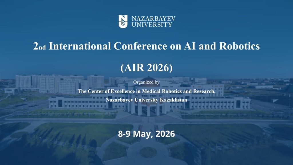 NU Медициналық робототехника зерттеулерін өткізетін құзырет орталығы (CEMRR) Қазақстанда Инженерлер мен ғалымдар институтының (IoES) техникалық қолдауымен Жасанды интеллект және робототехника бойынша 2-ші халықаралық конференцияны (AIR 2026) 2026 жылғы 8–9 мамыр күндері ұйымдастырады. AIR 2026 конференциясы жасанды интеллект, робототехника және олардың қолданылуы салаларындағы әртүрлі бағыттарды талқылау және тәжірибе алмасу мақсатында зерттеушілерді, ...