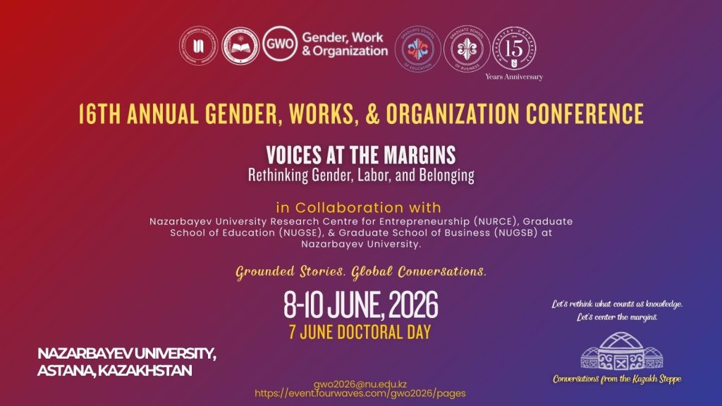 Гендер, еңбек және ұйым (Gender, Work & Organization – GWO) конференциясының 16-шы жыл сайынғы конференциясы 2026 жылғы 8–10 маусым аралығында Астана қаласындағы Назарбаев Университетінде өтеді. Іс-шара гендерлік зерттеулер және еңбек ұйымы саласындағы өзекті мәселелерді талқылау үшін ғалымдарды, практиктерді және суретшілерді біріктіреді. 1994 жылы Gender, Work and Organization ғылыми журналымен қатар ...