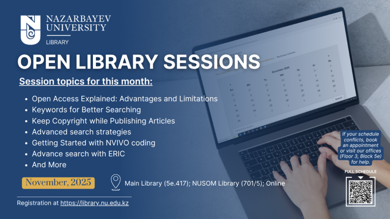 The Open Library Sessions complement the NU Library’s existing Information Literacy (IL) program modules and cover a wide range of topics that showcase the Library’s collections, services, programs, and research-related resources.