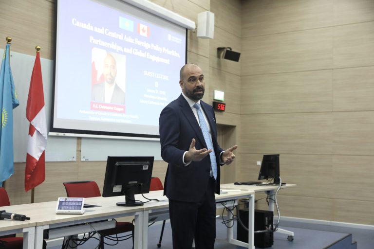 Nazarbayev University (NU) hosted a guest lecture by H.E. Christopher Duggan, Ambassador of Canada to Kazakhstan, Kyrgyz Republic, Tajikistan, Turkmenistan, and Uzbekistan. The event brought