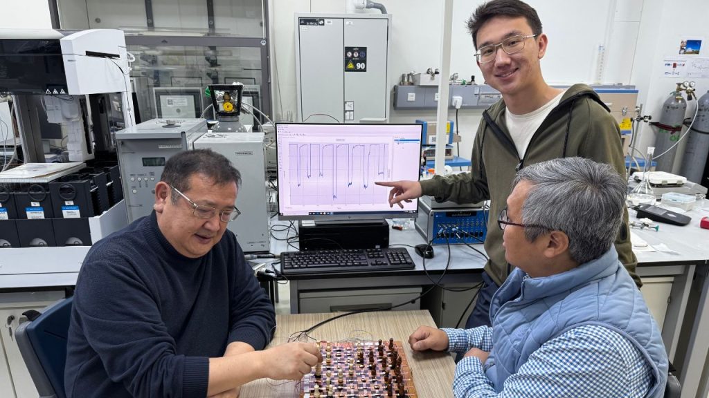 A third-year chemistry major, Sanzhar Abish, has developed an electrically responsive chessboard—an early prototype of touch-sensitive technology—under the joint supervision of Professor Nurxat Nuraje and Assistant Professor Salimgerey Adilov. The device is built using conducting polymer materials engineered by NU’s Conducting Polymer Research Team, marking a promising step toward next-generation tactile sensing systems at Nazarbayev University.