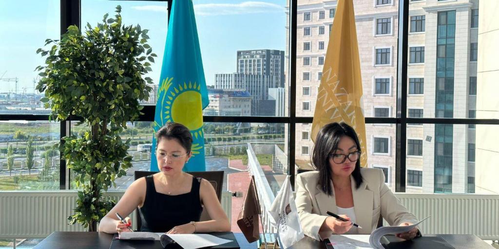 The MoU was signed by NU Vice President Dr. Assel Uvaliyeva and CEO of the Bulat Utemuratov Foundation Ainur Karbozova.