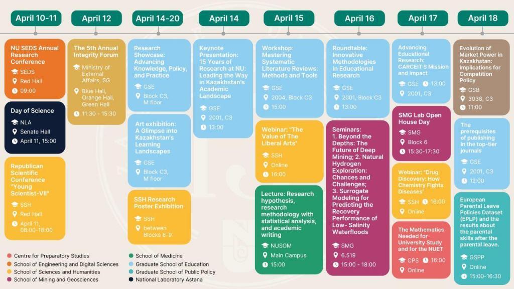 Nazarbayev University (NU) will host Research Week—a dynamic series of events dedicated to cutting-edge research and key issues in scientific advancement, from April 10 to 20.