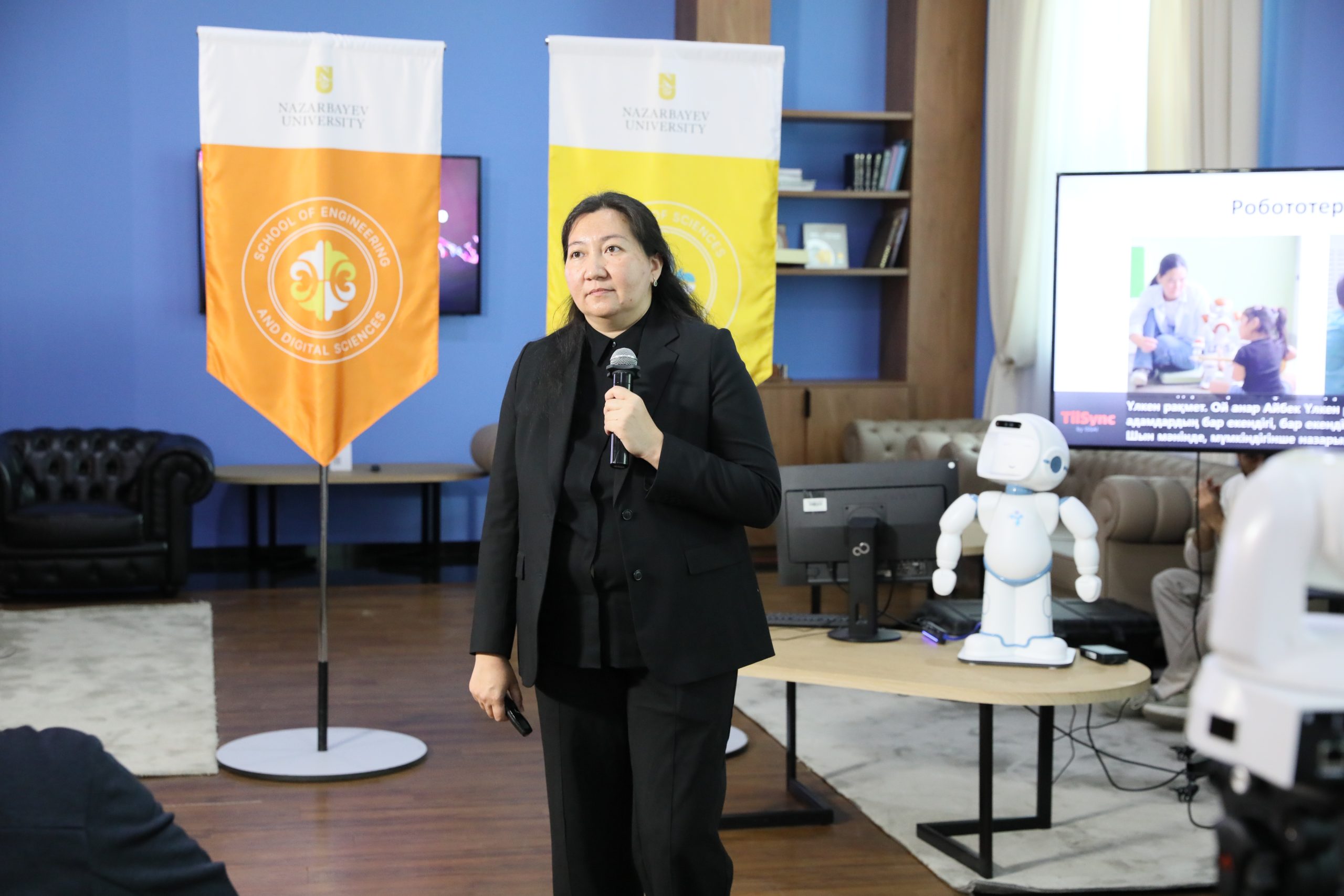 Профессор Анар Сандығулова робототехника арқылы балалардың әлеуметтік және коммуникативтік дағдыларын дамытуға бағытталған аутизмге арналған реабилитациялық әдістемесін таныстырды. Профессор Прашант Джамвал жасанды интеллекттің аутизм және церебральды сал ауруы бар балаларды реабилитациялауда қалай қолданылып жатқанын, соның ішінде жүріс жаттығулары, тепе-теңдікті дамыту және әлеуметтік дағдыларды жетілдіру жүйелерін, жеке және бейімделген тәсілмен енгізу тәжірибесін айтты.