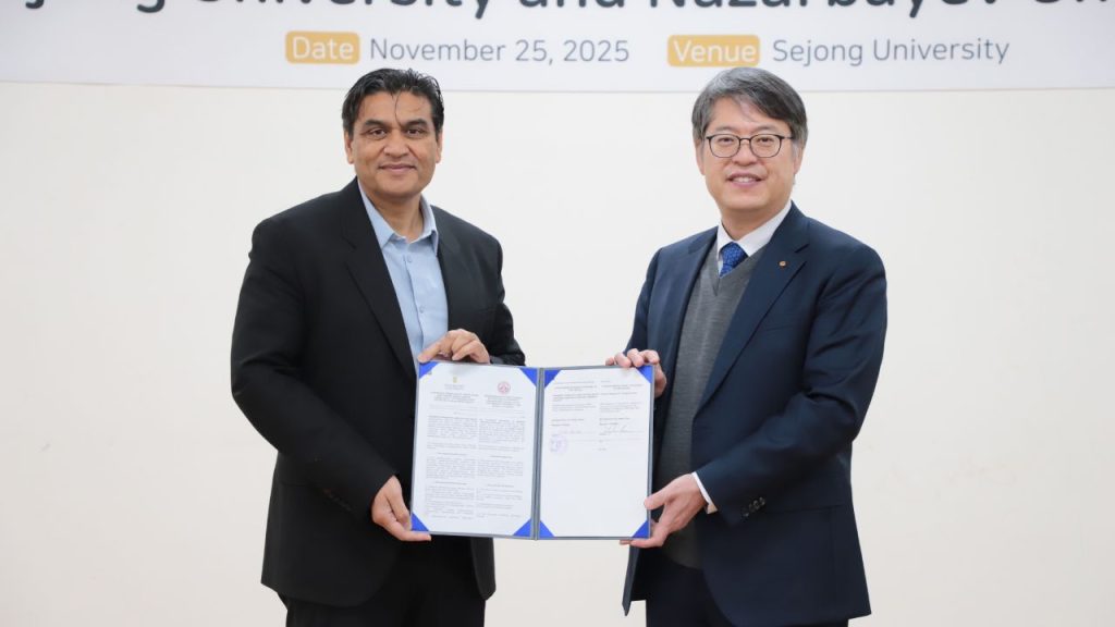 Nazarbayev University (NU) мен Sejong University академиялық алмасуды дамыту әрі бірлескен ғылыми және білім беру бастамаларын кеңейту мақсатында өзара ынтымақтастық туралы меморандумға қол қойды.