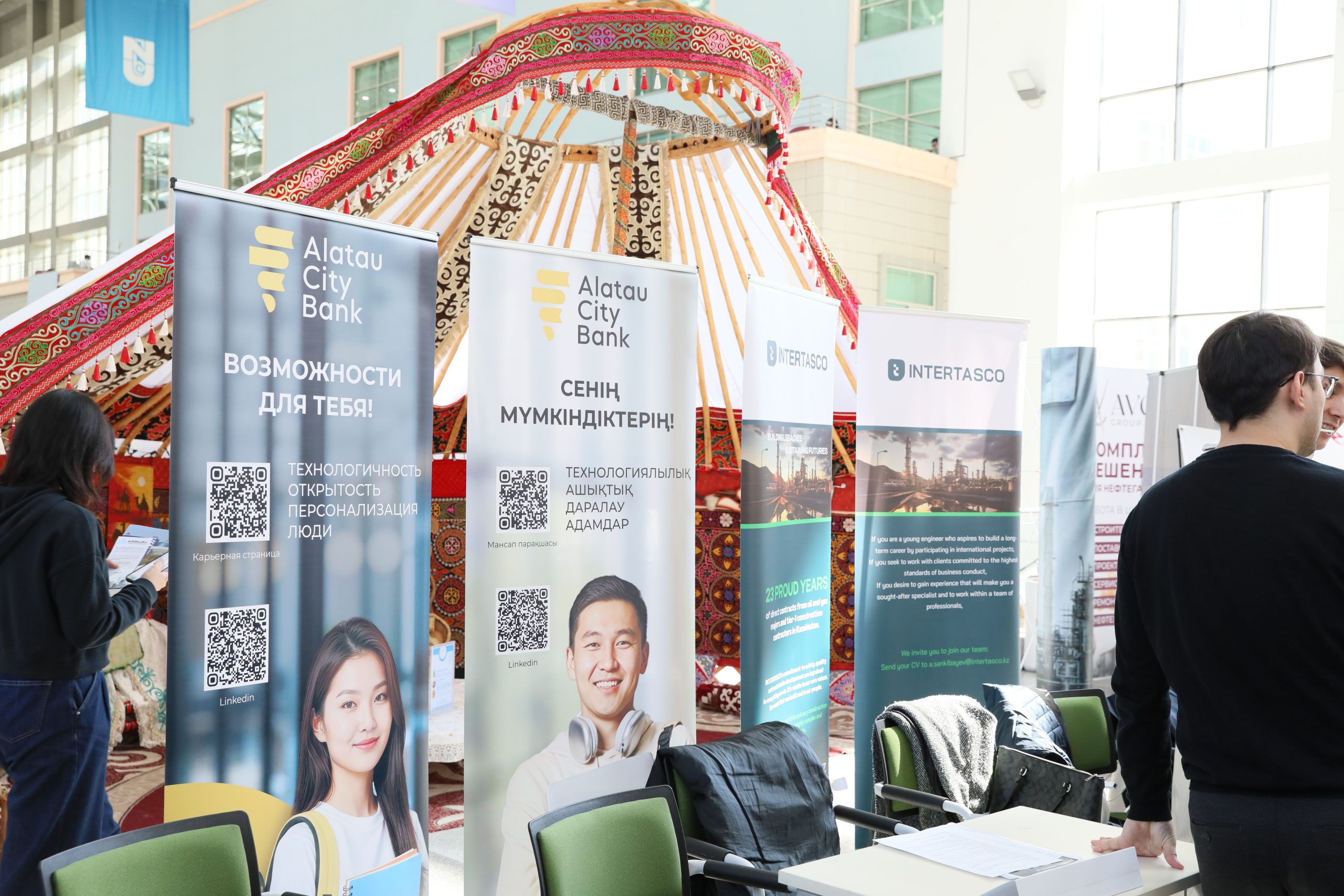 В Nazarbayev University в четвертый раз прошла масштабная ярмарка вакансий NU Job Fair 2026, организованная Центром карьеры и профориентации. В этом году мероприятие собрало около 120 казахстанских и международных компаний, став ключевой площадкой для встречи студентов и выпускников с ведущими работодателями.