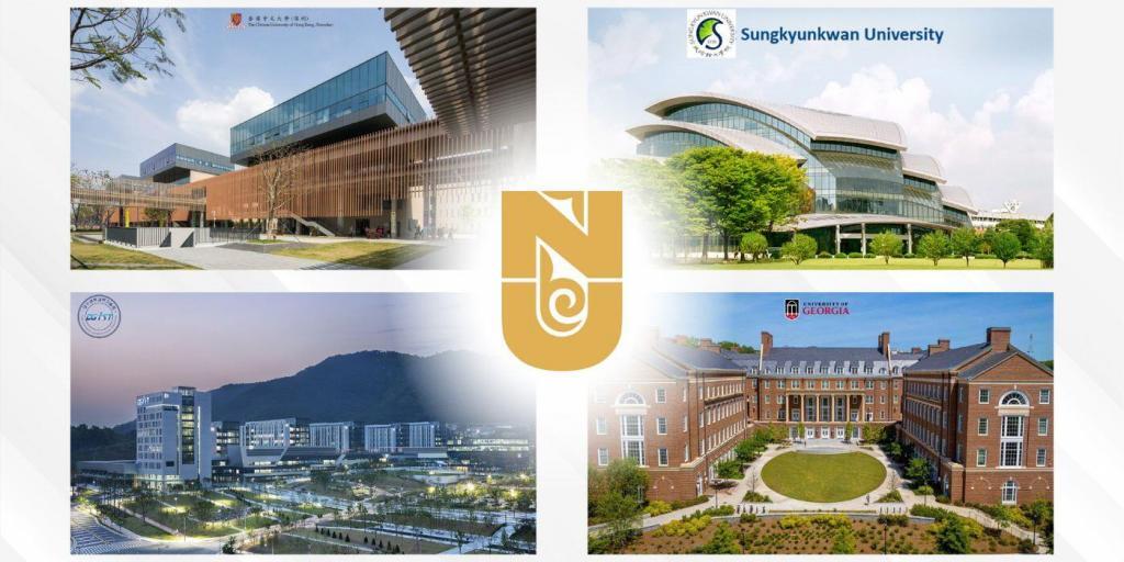 NU недавно установил новые академические партнёрства с четырьмя ведущими вузами из трёх стран: the University of Georgia (UGA) в США, Daegu Gyeongbuk Institute of Science and Technology (DGIST) и Sungkyunkwan University (SKKU) в Южной Корее, а также the Chinese University of Hong Kong – Shenzhen в Китае. Эти университеты входят в топ-500 рейтинга Times Higher Education, Shanghai ARWU rankings, что подтверждает их академическое превосходство и глобальное признание.