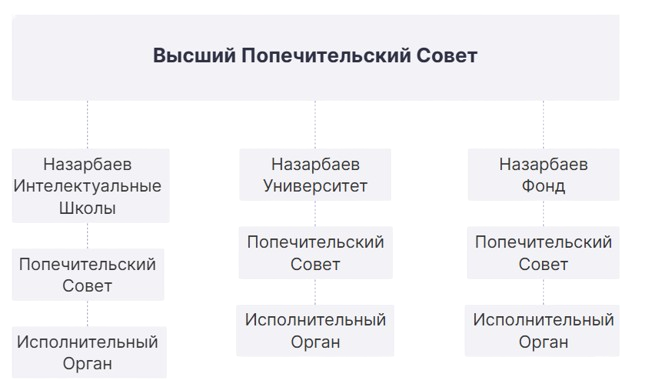 Высшим органом управления Университета, Интеллектуальных школ и Фонда является Высший попечительский совет, который возглавляет председатель Высшего попечительского совета.