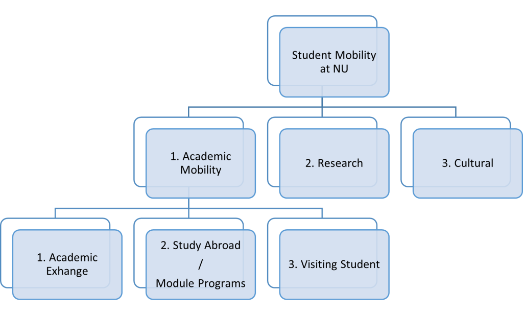 Student Exchange, Study Abroad, Short-term Study, Research Internship and Cultural Mobility based on agreements with Partner Universities.